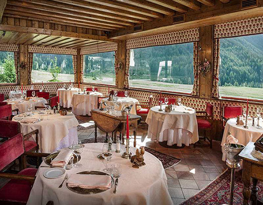 Il Ristorante Gourmet, Le Petit Restaurant con la sua stella Michelin, Le Bar à Fromage (Restaurant de montagne), La Brasserie de Bon Bec, La Terrasse e, in estate, la Maison a l'Alpage sono i sei "movimenti" di questa sinfonia di ricette, piatti, proposte culinarie dedicate con cura anche agli ospiti più piccoli. Un’autentica “Mensa sonora” (Biber) “ricomposta” più di tre secoli dopo mentre appena fuori dal Bellevue Hotel & Spa l'orto, nella bella stagione, fornisce parte delle materie prime che arrivano anche da coltivatori, contadini, allevatori e pescatori delle vallate, comprese quelle francesi che sono lì a un passo.