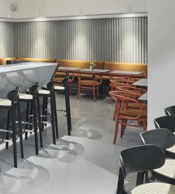 I classici in legno curvato di Thonet danno un tocco di colore al Bellaria, il più antico caffè di Vienna, dal 1870 punto di incontro per letterati, amanti delle carte, artisti, esponenti della cultura, dell’economia e della politica che condividono la passione per la bevanda nera senza tempo, il caffè. I luminosi ambienti dell’edificio originario sulla Bellariastraße sono stati oggetto di un’accurata, recente, ristrutturazione a cura degli architetti per interni del BÜRO KLK: un'"iniezione" di modernità pur rispettando l’identità tradizionale del celebre locale. Non solo il nuovo bancone monolitico in pietra lavica e una sinuosa scultura luminosa, ma anche e soprattutto le ricercate sedute in legno curvato della collezione 209 e 214 di Thonet in rosso corallo acceso conferiscono una nota di freschezza alle sale. Il Café Bellaria si trova in zona centrale, fra il quartiere dei musei, il Volkstheater e la Ringstraße e dal 1870 è una vera e propria istituzione anche per gli appassionati della buona cucina e della bella vita. Il progetto di ristrutturazione degli ambienti originari rispetta l’architettura storica del luogo: per conservare l’autenticità e il fascino dello storico caffè, infatti, gli architetti hanno lasciato intatte le grandi finestre ad arco a tutto sesto e la volta a cupola alta cinque metri presente all’ingresso. Il concept dei progettisti richiama, nella forma e nei materiali, il contesto urbano in cui il celebre caffè è immerso: il bancone del bar in pietra naturale, per esempio, ricorda il rivestimento di basalto del vicino "mumok", il Museo di Arte Moderna della Fondazione Ludwig di Vienna. Un’installazione luminosa contemporanea si snoda lungo tutto il soffitto decorato a stucco per sfociare nell’imponente cupola. La sedia in legno curvato 214 (ex N. 14) di Thonet in rosso corallo acceso e con seduta in paglia di Vienna rappresenta il trait d’union fra la tradizione del caffè viennese e la modernità. Il modello, diventato famoso proprio come sedia da caffè, è una vera e propria icona ed è ancora oggi il prodotto industriale di maggior successo nel mondo: con questa sedia inizia, infatti, la storia del mobile moderno. Grazie alla sua estetica chiara ed essenziale, riesce a trovare collocazione in qualsiasi ambiente da oltre 160 anni. Il legno utilizzato oggi per la 214 proviene dalla silvicoltura sostenibile; inoltre, grazie all’elevata qualità e all’estetica senza tempo, la sedia dura a lungo e può essere riparata senza problemi. Per arredare il nuovo Café Bellaria è stato scelto anche l’elegante classico in legno curvato 209, mordenzato rosso corallo intenso. Grazie alla riduzione formale unita alla forma organica, la confortevole sedia con braccioli si presenta nello spazio quasi come una scultura. La seduta ha un’imbottitura di velluto color rame, la stessa delle panche disposte lungo le pareti ricoperte di piastrelle con colori ad acqua. Il bancone monolitico del bar in roccia lavica smaltata rappresenta l’elemento centrale del locale e svolge una funzione rappresentativa e comunicativa. Intorno sono stati disposti sgabelli da bar neri, della collezione 118 H di Thonet. Il progetto contemporaneo scaturito dalla penna del designer Sebastian Herkner cita il linguaggio formale familiare della prima sedia in legno curvato di Thonet e si presta a un uso molto versatile nel contesto gastronomico in quanto mobile minimalista, elegante e leggero. In omaggio alla storia del luogo, anche la seduta degli sgabelli da bar è in paglia di Vienna.