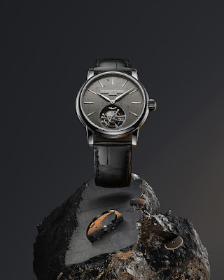 Frederique Constant festeggia 35 anni di attività e i 15 anni dall'introduzione dell'emblematico calibro tourbillon. Per l’occasione, presenta un Classic Tourbillon in platino con un quadrante meteorite. E' un prima assoluta, limitata a soli 35 esemplari numerati, ciascuno dei quali interamente rifinito a mano (un esercizio affidato a due tecnici orologiai la cui unica missione era quella di raggiungere il massimo livello possibile di finiture manuali sul movimento). Per il pubblico dei collezionisti diventa subito un pezzo da non lasciarsi sfuggire. L’apertura del quadrante, a ore 6, svela il tourbillon che la maison ginevrina ha creato esattamente 15 anni fa, nel 2008. Si tratta di uno dei rari modelli con cassa in platino ed un quadrante meteorite attualmente disponibili sul mercato. Spiegano a Ginevra: "Il quadrante meteorite è il prezioso 'testimone' di un savoir-faire d’eccezione. Frammento di spazio caduto sulla Terra per un felice, sebbene raro, caso, in una città della Namibia chiamata Gibeon, è la migliore illustrazione del rapporto tra umanità, universo e astronomia, di cui l’orologeria è la diretta discendente. Ma questo pezzo di storia celeste è anche un atto di coraggio per la maestria necessaria nell’arte del cesello, poiché intagliare un quadrante meteorite, traboccante di metalli, è un esercizio di elevatissima competenza e raffinatezza. Infatti, questo prezioso materiale si rompe e si sgretola e potrebbe aver subito gravi alterazioni - principalmente la corrosione - a causa dell’elevata quantità di ferro presente. È quindi necessaria una grande destrezza per tagliare un disco perfettamente piatto, liscio e da cui non si stacchi nessun frammento, che potrebbe finire nel movimento sottostante. Il quadrante meteorite, dallo spessore di soli 0,5 mm, viene poi protetto da uno strato di rutenio che ha il compito di esaltare i riflessi grigi naturali, preservando la superficie dall’ossidazione". Per garantire la maggiore coerenza visiva possibile con il colore del quadrante in meteorite, il movimento sfoggia anche una finitura rutenio, molto rara per Frederique Constant e per l'intero settore dell'orologeria. Ogni incisione, compreso il numero individuale dell'orologio (sulla gabbia del tourbillon e anche sul fondello), è rodiata con il fine di garantire che i caratteri risaltino chiaramente e nitidamente. La massa oscillante è in ottone con una sezione in tungsteno attorno al bordo.